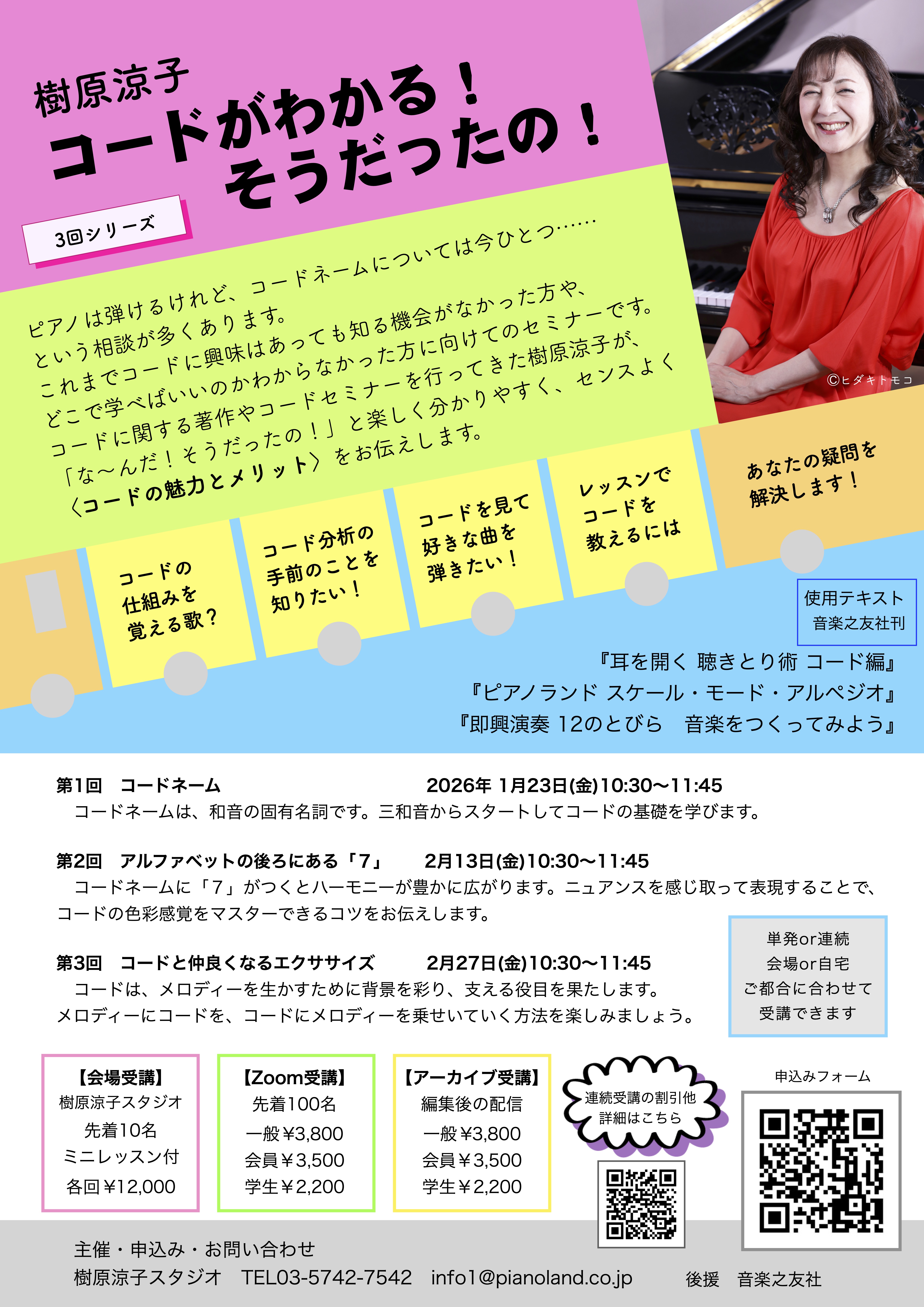 3回シリーズセミナー 樹原涼子 コードがわかる! そうだったの!